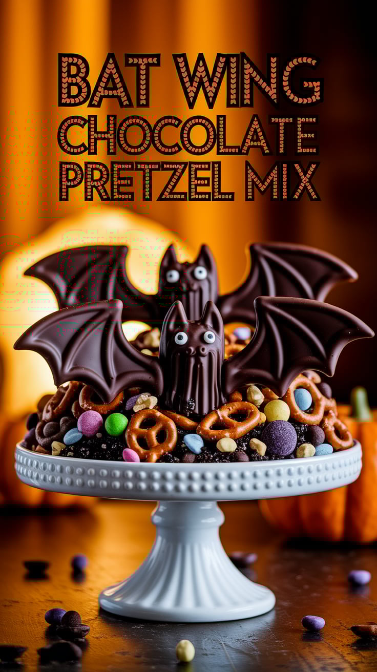Congratulations — you now have your very own Bat Wing Chocolate Pretzel Mix ready to devour! 🍫✨