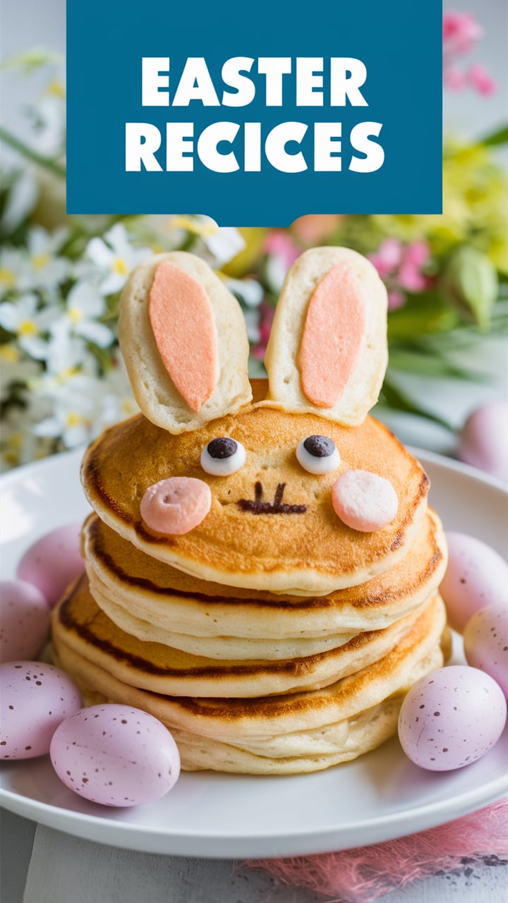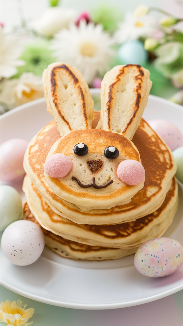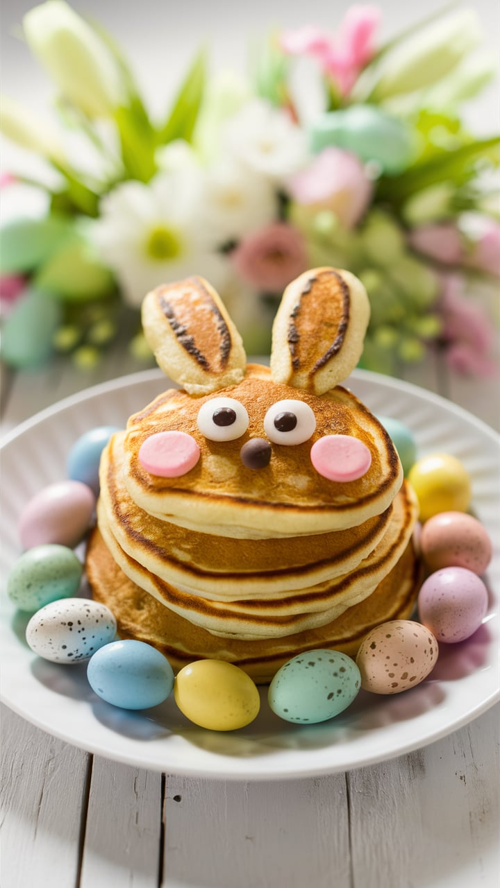 There’s no better way to start Easter morning than with these playful bunny pancakes. Kids love decorating them, and you can get creative with toppings.