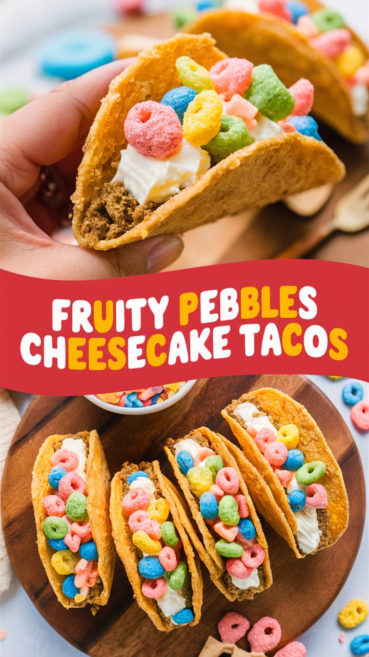 Fruity Pebbles Cheesecake Tacos are the perfect example of how dessert can be simple, fun, and memorable at the same time. They don’t require advanced baking skills, expensive ingredients, or hours in the kitchen — yet they deliver flavor, texture, and presentation that feels special.