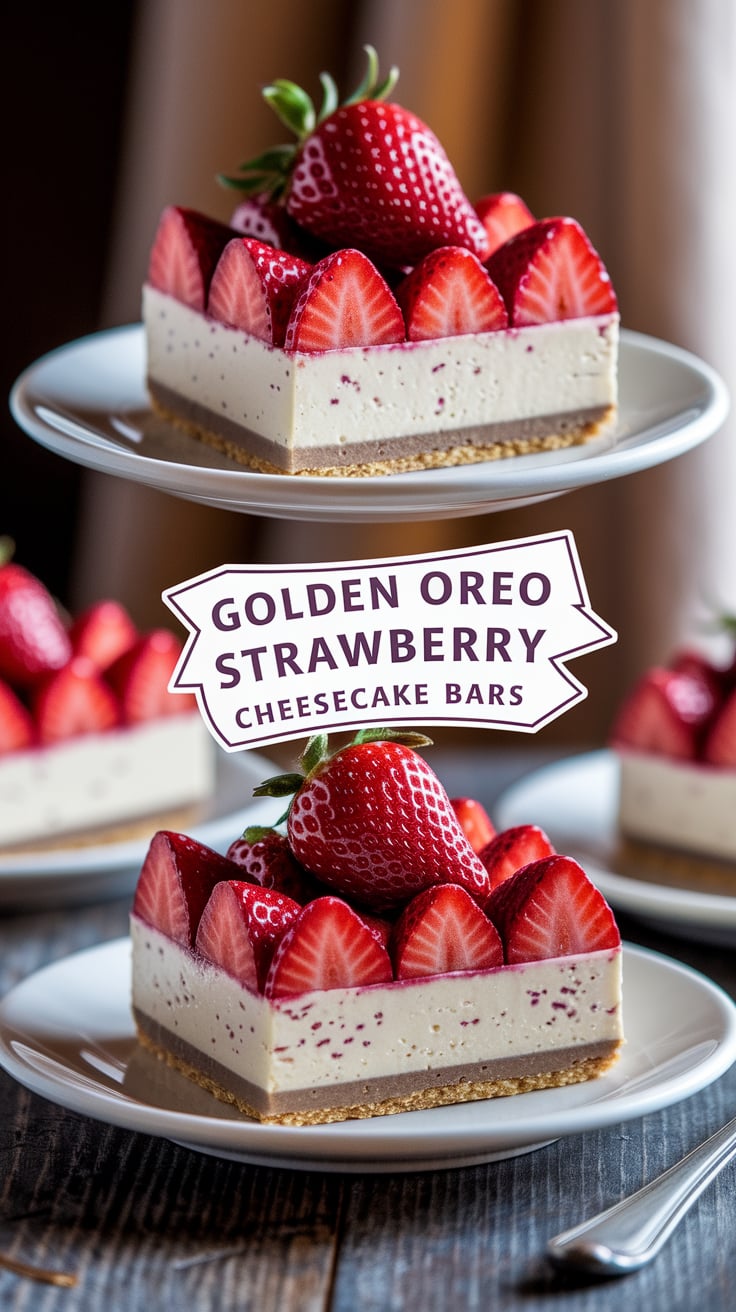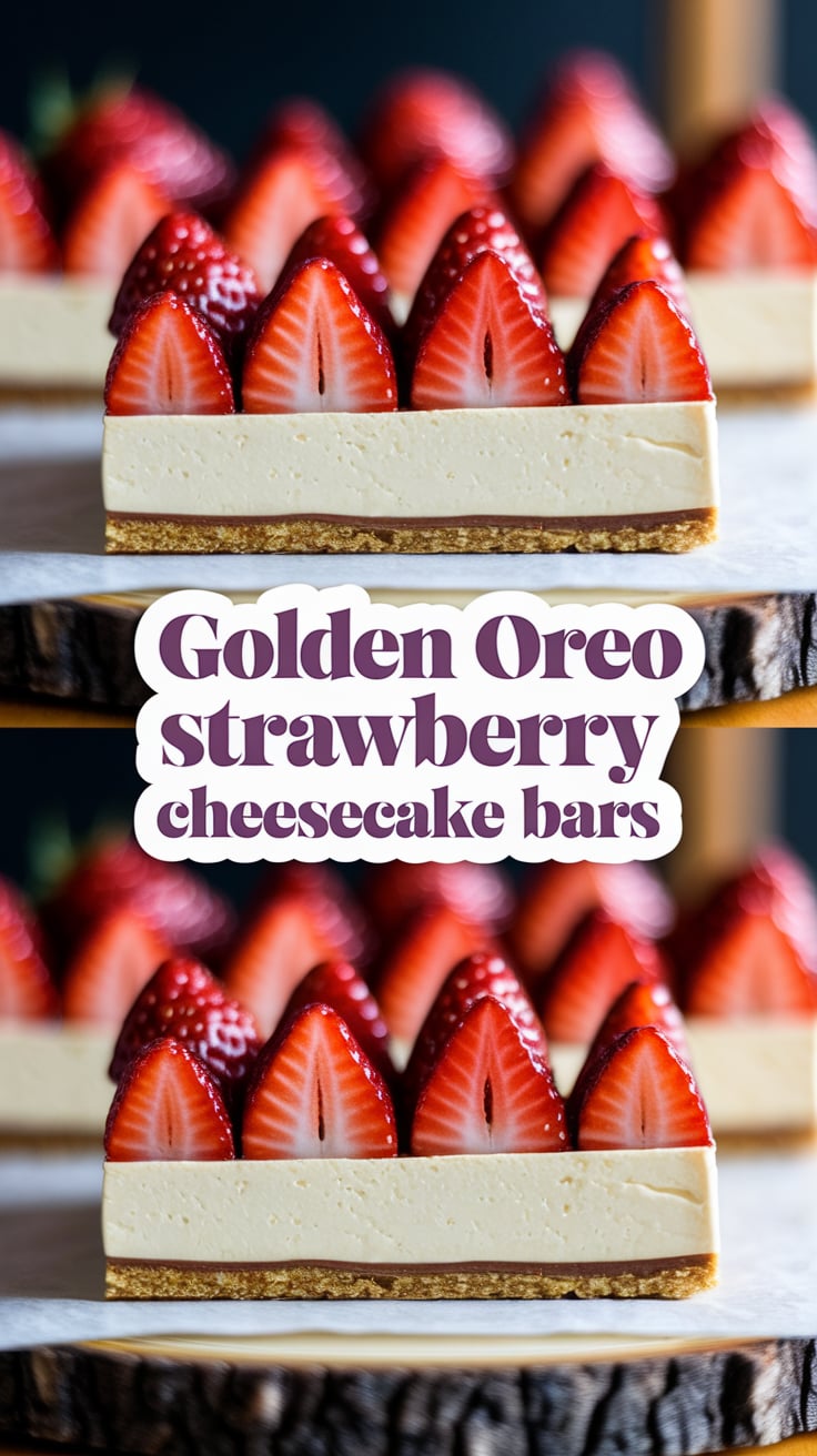 The combination of buttery Golden Oreos, smooth cheesecake filling, and juicy strawberries creates an unforgettable dessert that’s perfect for any season.