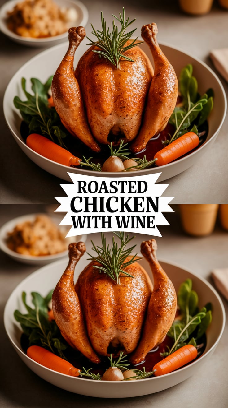 Roasted chicken with wine is one of those timeless dishes that feels both comforting and elegant at the same time. It’s the kind of recipe that fits effortlessly into a busy weekday dinner yet feels special enough to serve at a weekend gathering or family celebration. When prepared correctly, a whole chicken roasted with wine becomes incredibly juicy, flavorful, and aromatic, with crisp golden skin and tender meat that practically falls off the bone.