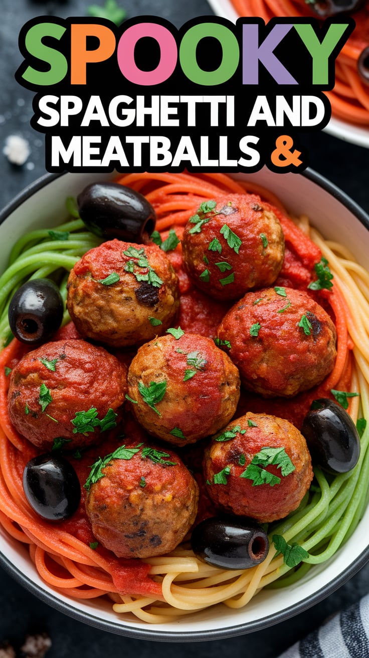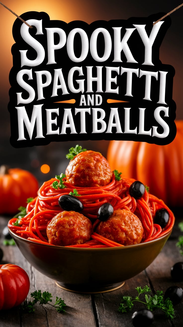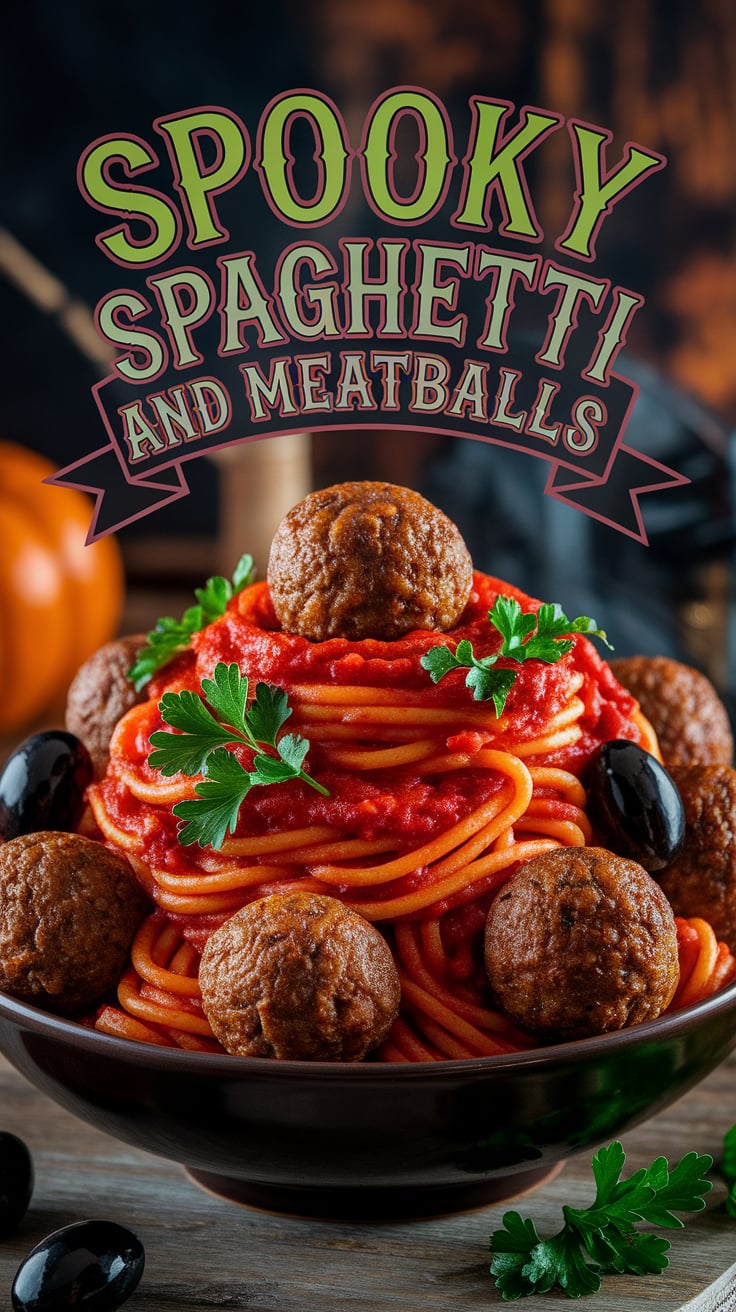 When Halloween rolls around, most people think of costumes, candy, and creepy decorations — but what about the dinner table? 🍝 This year, turn your regular meal into a frightfully fun experience with Spooky Spaghetti and Meatballs with Black Olives — a dish that’s equal parts delicious, imaginative, and eye-catching.